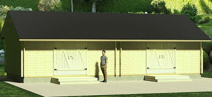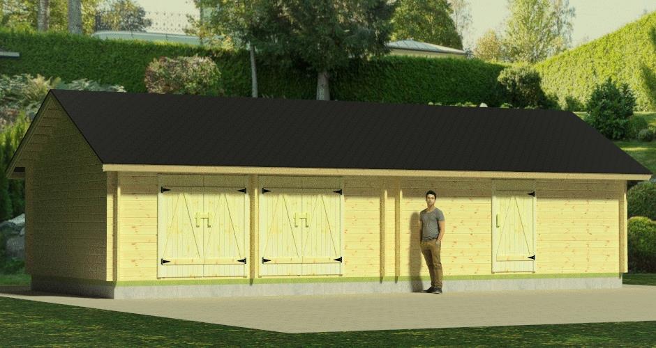 Suora- tai vinoseinäinen. 1- tai 2-oviaukkoinen, aukkokorkeus ja aukkoleveys muunneltavissa. Käyntiovi tarvittaessa. Ovilehdet korkeampana, jos alapuu katkaistaan (maapohja).