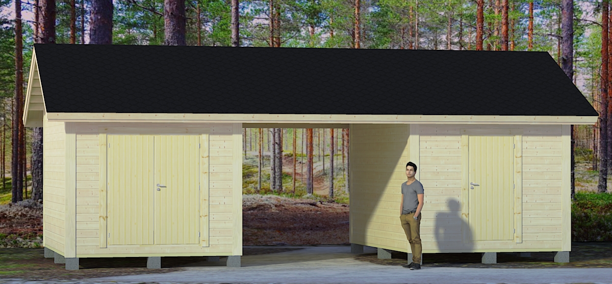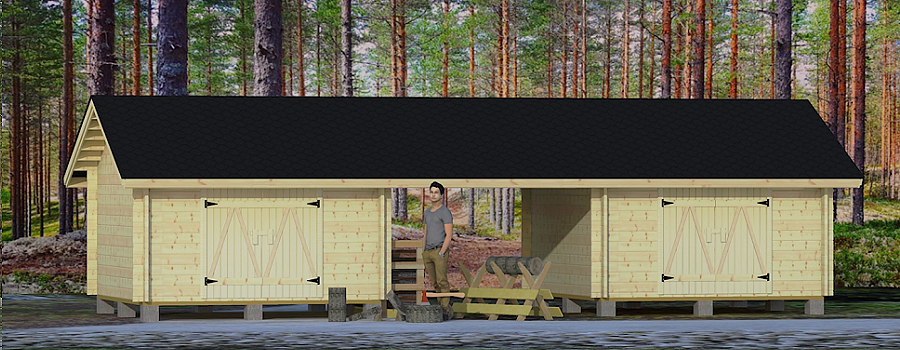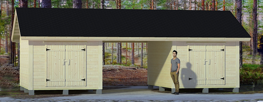 Ovilehtikorkeus 1930mm. Oviaukot myös päätyyn. Vaja soveltuu esim. polttopuiden, moottoriajoneuvojen, pihakalusteiden ja pientavaran säilytykseen. 2- oviaukkoisiin väliseinä lisävarusteena. Umpimalli, sivut raolla tai 1-sivu raolla.