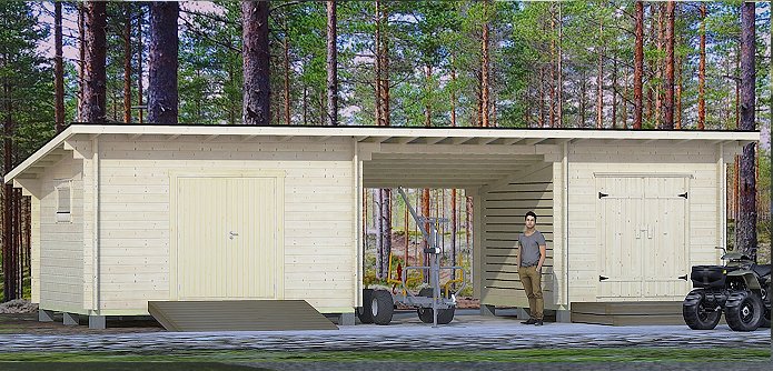 Ovilehtikorkeus 1930mm. Oviaukot myös päätyyn. Vaja soveltuu esim. polttopuiden, moottoriajoneuvojen, pihakalusteiden ja pientavaran säilytykseen. 2- oviaukkoisiin väliseinä lisävarusteena. Umpimalli, sivut raolla tai 1-sivu raolla.